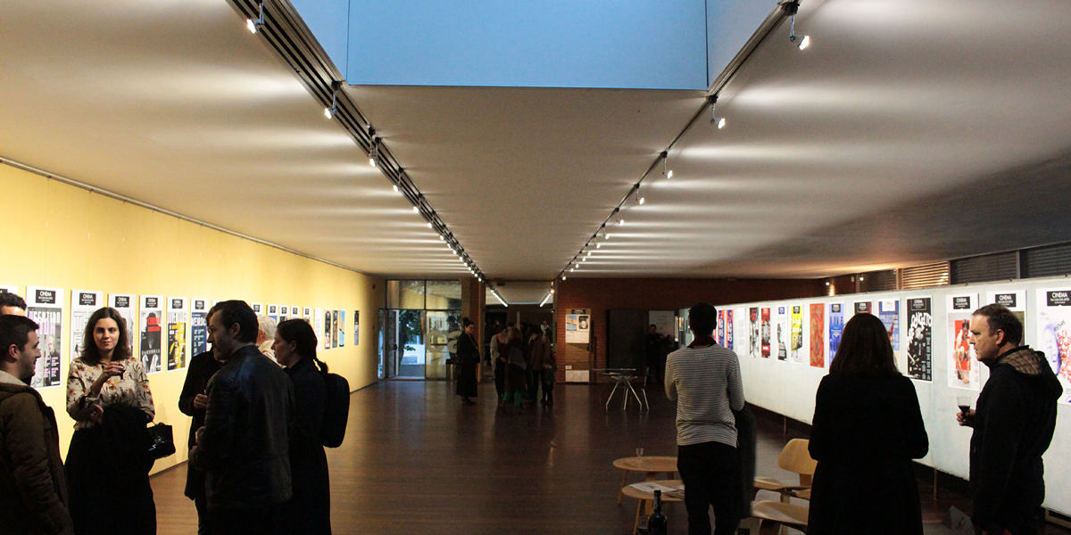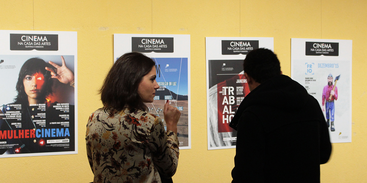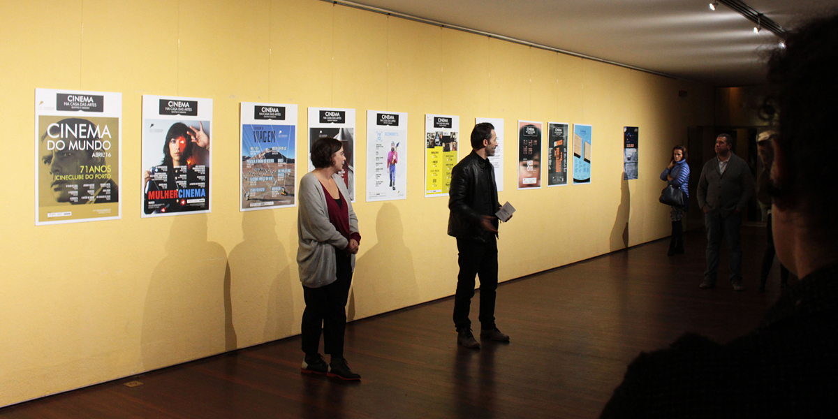 Exposição retrospectiva dos cartazes mensais das sessões regulares do Cineclube do Porto. Painéis A2 em impressão digital sobre PVC, expostos na Casa das Artes do Porto. Fotografias da inauguração Gonçalo Vaz.