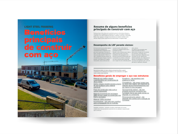 Branding, informação institucional, outdoor, publicidade e comunicação web para empresa de construção em Estruturas de Aço Leve.